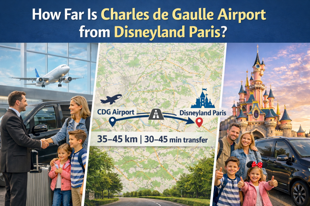 - CDG → Disneyland Paris: 40–45 km